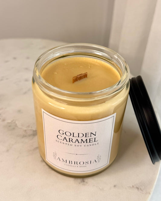 Golden Caramel illatgyertya pamut kanóccal